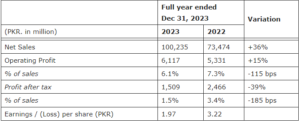 ISLAMABAD: FrieslandCampina Engro Pakistan Ltd (FCEPL) has disclosed its financial performance for the fiscal year ending on December 31, 2023.