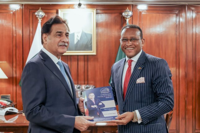 The Parliamentary cooperation between the two nations came under discussion during a meeting between H.E. Dr. Jemal Beker Abdula, Special Envoy, Ambassador Extraordinary and Plenipotentiary of the FDR Ethiopia to the Islamic Republic of Pakistan, and H.E. Sardar Ayaz Sadiq, Honorable Speaker of the National Assembly of the Islamic Republic of Pakistan.