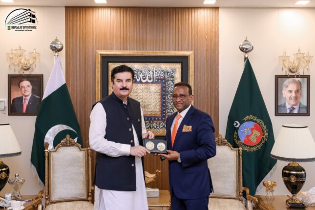 ISLAMABAD – Ethiopia’s Ambassador Extraordinary and Special Envoy, Dr. Jemal Beker Abdula, called on Governor Khyber Pakhtunkhwa Faisal Karim Kundi at the Governor’s House in Islamabad to explore ways to strengthen bilateral ties between the two countries.