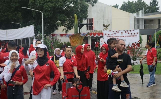 The 3-kilometer fun walk concluded at the Embassy, where participants were welcomed with refreshments and surprise gifts. Following this, various games known as ‘Lomba 17an’ in Indonesian commenced, featuring competitive events such as badminton, table tennis, volleyball, and futsal.